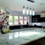 The biggest statement piece in this kitchen is the bespoke feature wine rack. The clients wanted to add an artistic touch so a graffiti artist created a unique design on this exciting feature in their new kitchen.