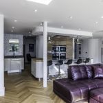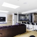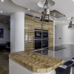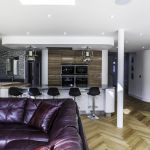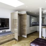 As well as the kitchen, the client wanted us to create a media unit for their TV/lounging space. Our designer, Maxine, used the same finishes as the kitchen to marry the two spaces, she also incorporated a hidden doorway into this area, with the tall cupboard leading to another room.