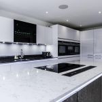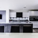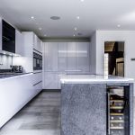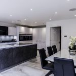 This beautiful kitchen is a mix of ‘Polar White’ gloss and ‘Black Star’ cabinetry.