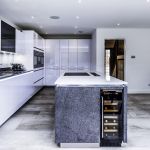 The stunning island takes centre stage, with the slate veneer doors providing texture and contrast in a light room. An island is often the hub of the kitchen and a great entertaining area, especially in an open plan space. The Siemens induction hob with down-draft extractor makes for a social cooking area, perfect for those all-important dinner parties!