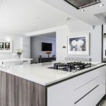 The white quartz worktop in ‘Lactea’ compliments the cabinets and maximises the light in the kitchen, it also blends with the rest of the clients interior choices.