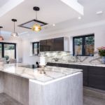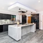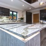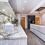 The work surface is the focal point to this kitchen, achieving the ‘wow factor’ the client wanted. The worktops are 30mm quartz in ‘Beaumont’, with a striking thick vein running through it and added sparkle for a luxury finish.