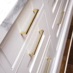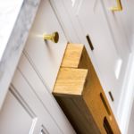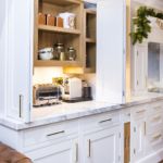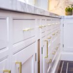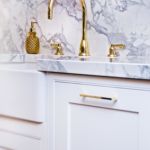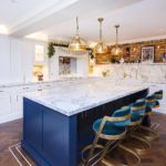 The main focal point of the kitchen arguably is the island. This was supplied to the customer as ‘ready to paint’. Which then allowed the customer to paint it their desired colour a deep royal blue. When placed with the signature painted white doors, gold fixtures and, the white marble effect laminam worktop, sourced by the customer, it helps to tie it all together and pop.