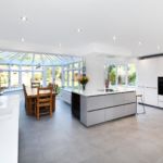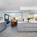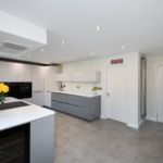 This kitchen has been designed to any families dream. The island in the middle or the room really is the heart, as it is close the dining table close enough to casually chat and talk to family while cooking and prepping. As well as having stools to the side for you to perch on if you wanted to be closer to the cooking action. The island has a ceiling mounted extractor which is perfect because there isn’t anything to block or obstruct your view where peering round to chat to people at the table or on the stools.