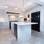 The Island in the middle creates a central point for the kitchen where you have a big workspace for you to prep all your meals on where you can spread all your ingredients out. The island also has stools for you to sit at to drink your morning coffee and pop up power sockets so as you can plug in any food gadgets or charge your phone. The ribbed side panel detail on the island adds to the overall finish and charm of the kitchen because it was decided not to be a smooth panel as this wouldn’t have given the same to end finish.