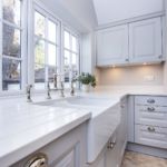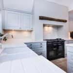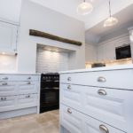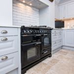 The smaller details really make this kitchen and help to make it look and feel like a traditional country kitchen. This has been achieved by using our 1008/1009 chrome knob & shell handle which is a mix of both cups for the drawers and pull outs and knobs for on the doors. Another small finishing detail that sets the kitchen off is the pelmet at the top of the wall units this is then bevelled to match the shaker pattern on the doors. Arguably the butler sink with the mixer, spray and boiling tap is the big period feature that grabs your attention along with the clients Range master cooker.